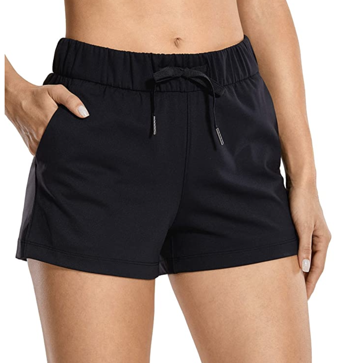 CRZ YOGA Women’s Stretch Lounge Travel Shorts Elastic Waist Comfy Workout Shorts