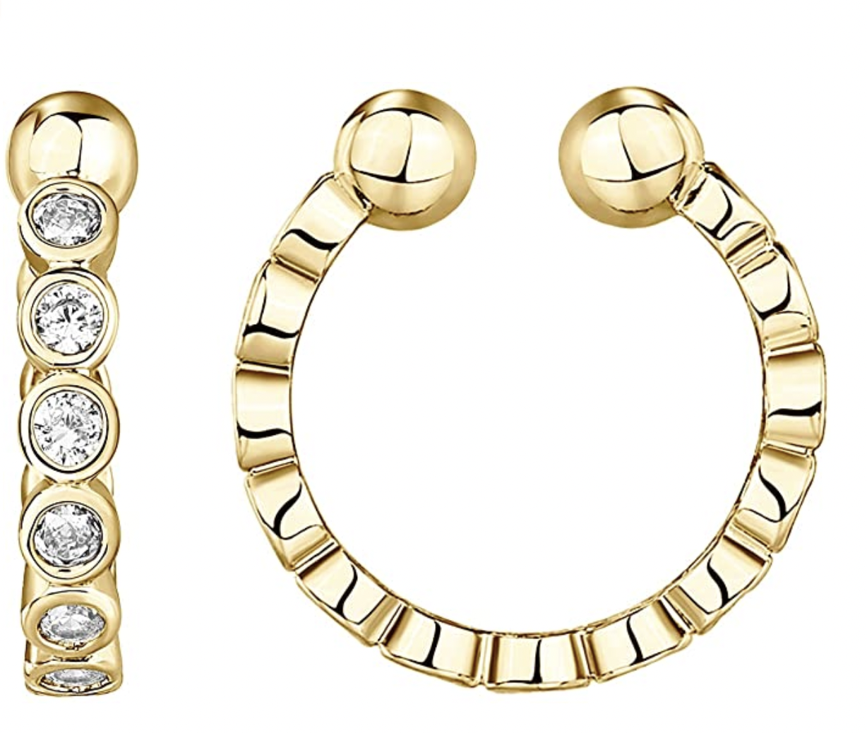 PAVOI 14K Yellow Gold Plated 1.5mm Cubic Zirconia Sparkling Round Huggie Ear Cuff
